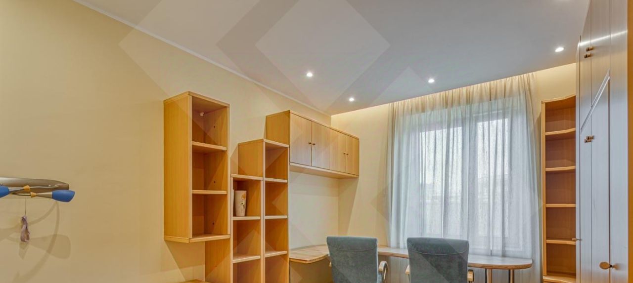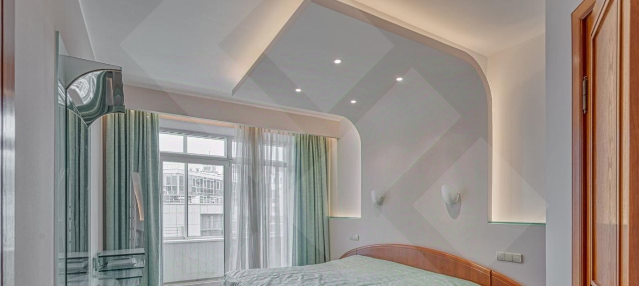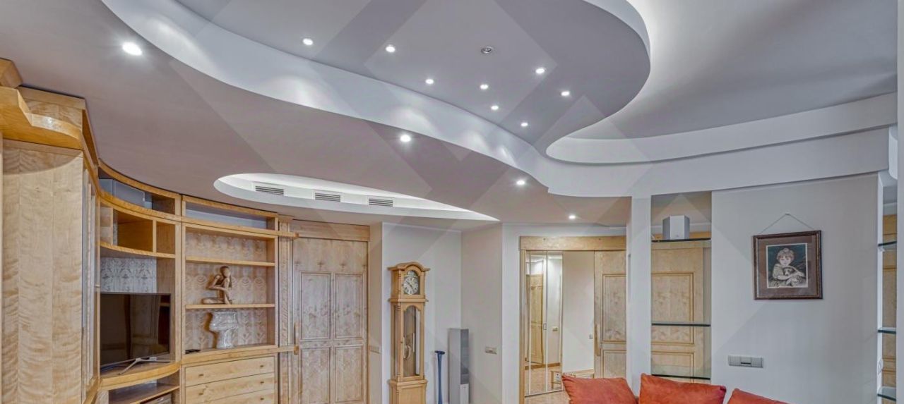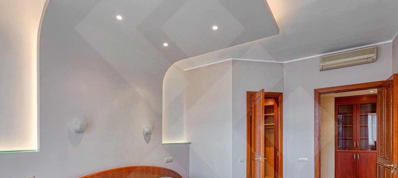 Мебель современная импортная. Кухня-встроенная , полностью укомплектована всей бытовой техникой. Пол паркетная доска+плитка. Потолки многоуровневые с точечным освещением. Много зеркал и мест для хранения.