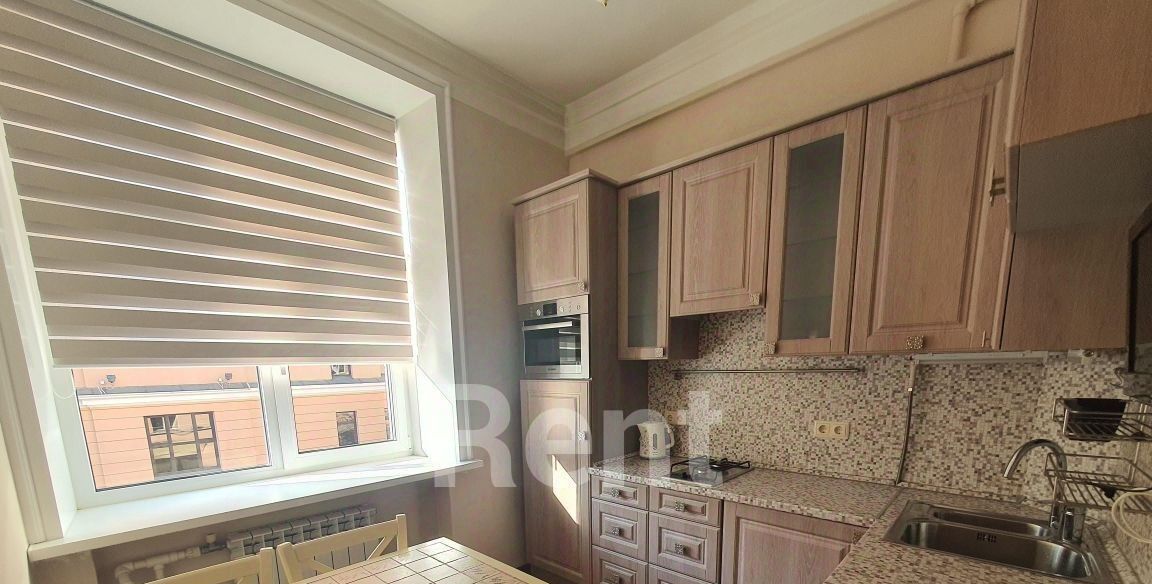 Рядом с метро "Маяковская" предлагается двухкомнатная квартира. Уютная гостиная располагает угловым диваном цвета темного шоколада и изящным креслом, а в светлой спальне установлена большая кровать, шкаф для вещей и рабочий стол. На кухне вы найдете варочную панель, духовой шкаф и вместительный гарнитур. В ванной комнате - душевая кабина и стиральная машина.
