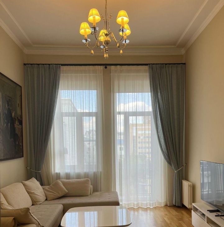 Квартира в Доме актеров театра МХАТ, историческое здание по уникальному проекту, один подъезд, консьерж. Все окна в квартире смотрят во двор, высота потолков 4 метра. Современный ремонт, гардеробная комната, изолированная кухня, балкон, раздельный санузел. Полностью меблирована, кондиционер, посудомойка, скоростной интернет, Smart TV. Парковки нет, только кратковременная стоянка. Субаренду не предлагать, возможно оплата по безналу.