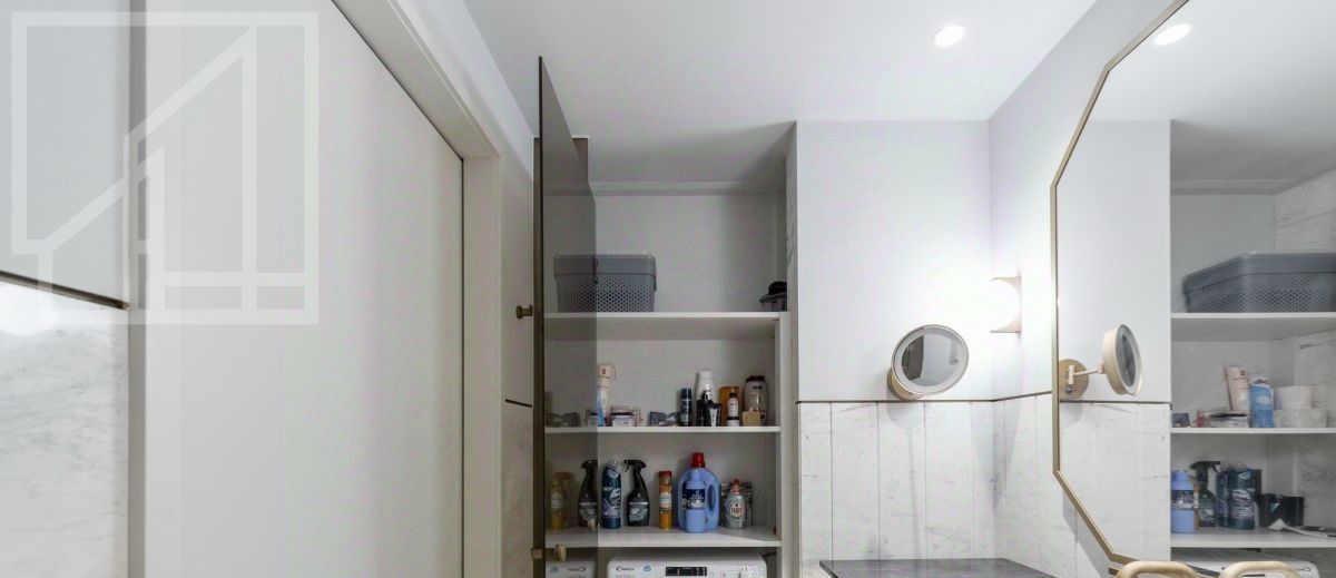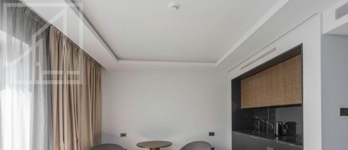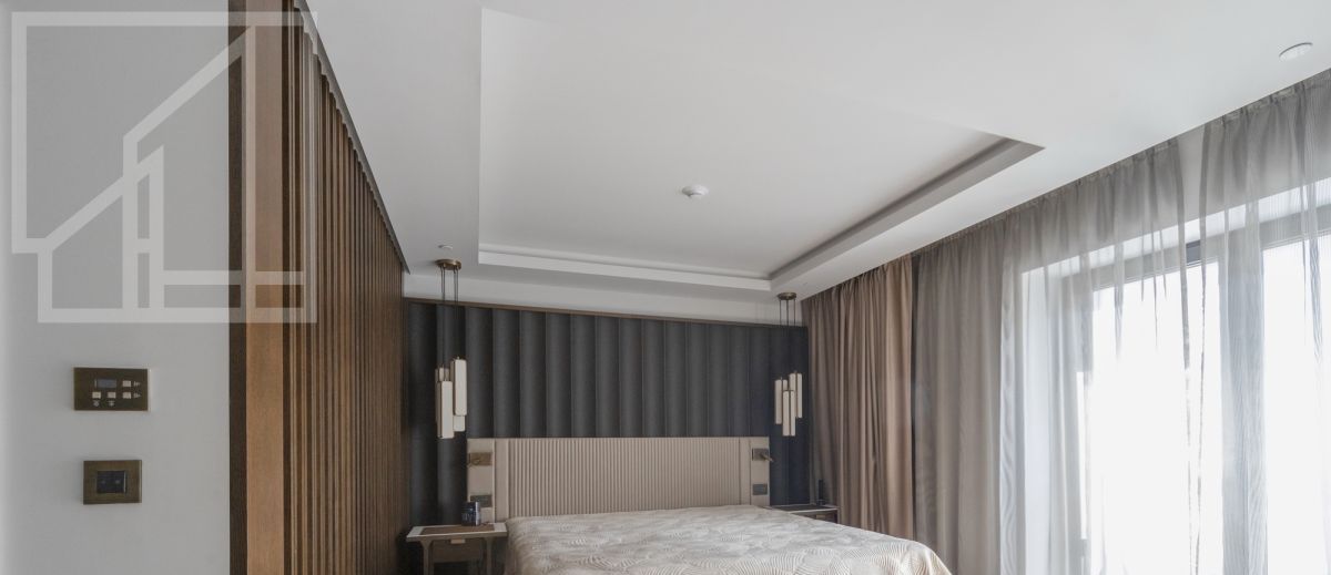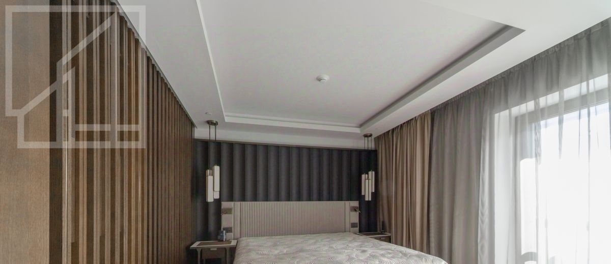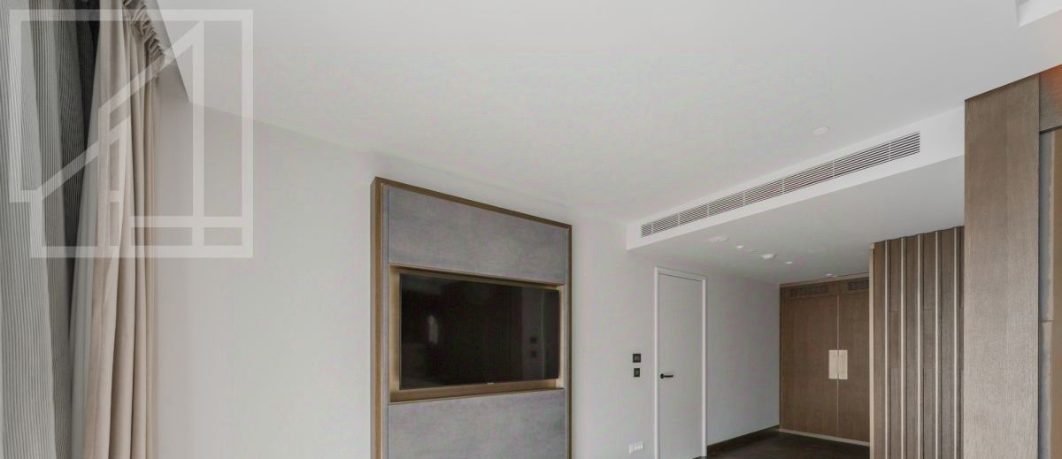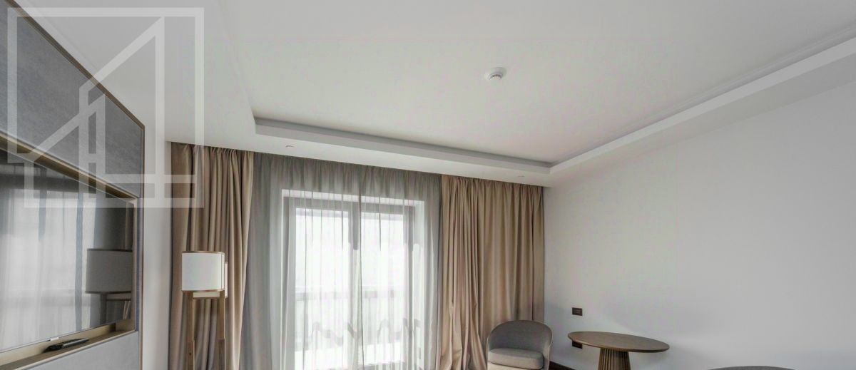 Планировка: просторная гостиная, объединенная с кухонной зоной, большая мастер-спальня со своим с/у и гардеробной зоной, гостевой с/у. Из окон открываются отличные виды на Тверскую улицу и парк "Триумфальная площадь".
