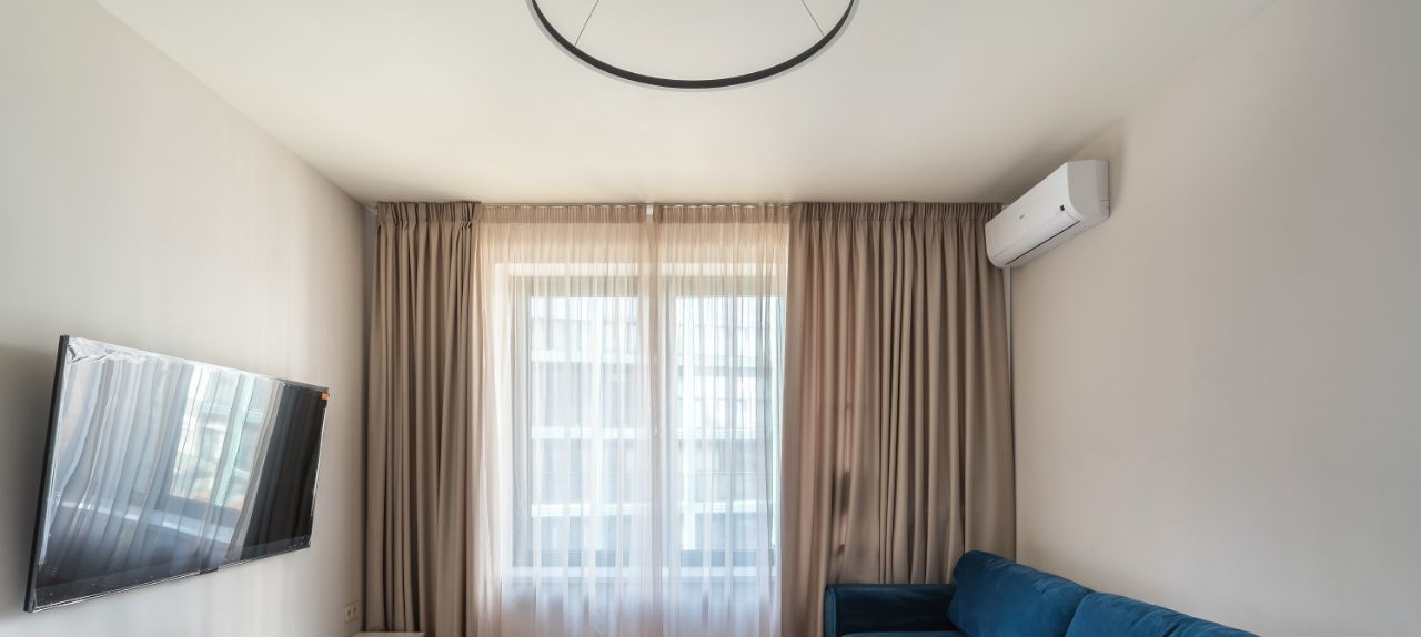 В ЖК Премиум-квартал JAZZ (Джаз) сдается 2-х комнатная квартира 55 кв.м. м панорамным остеклением и французском балкончиком. Планировка квартиры включает в себя: просторную кухню- гостиную, детскую комнату, которую можно переоборудовать в кабинет, балкон с зоной отдыха, совмещенный санузел с душем. В квартире выполнен качественный ремонт, есть вся необходимая для комфортного проживания мебель и техника. В доме установлена система центрального кондиционирования, система приточно-вытяжной вентиляции и очистки воздуха, своя внутренняя бойлерная система и система очистки воды до уровня питьевой.