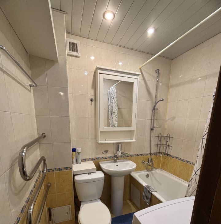 В квартире выполнен косметический ремонт. Квартира очень теплая. В наличии всё необходимое для комфортного проживания: холодильник, телевизор и стиральная машина. Мебель имеется как на кухне, так и в комнатах. Санузел совмещённый, оборудован ванной, а из окон открывается вид на тихую улицу. Также есть застекленный балкон.
