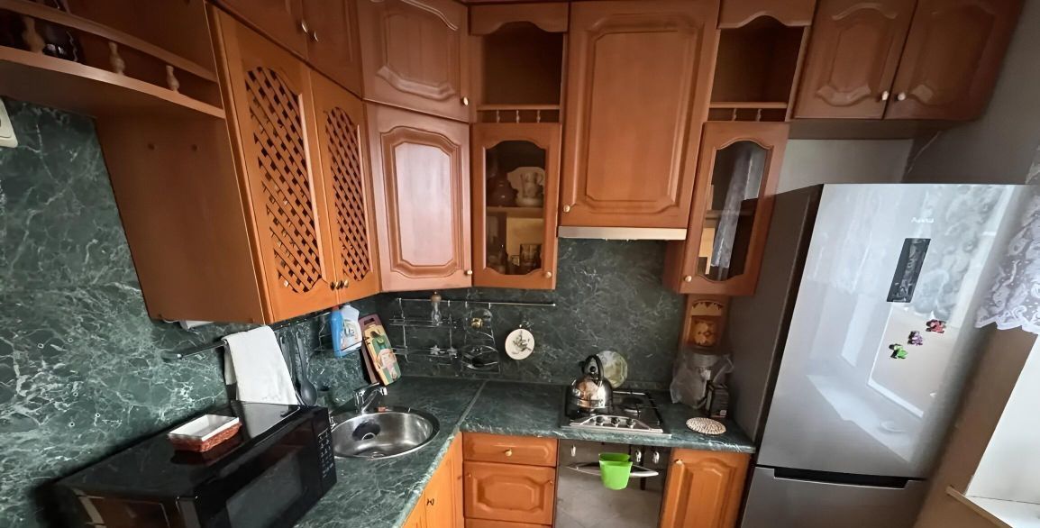 Квартира находится на 11-м этаже 14-этажного блочного дома, построенного в 1971 году. Общая площадь — 40 кв. м, жилая площадь — 24 кв. м, кухня — 7 кв. м. Высота потолков составляет 2,64 метра.
