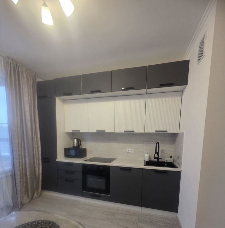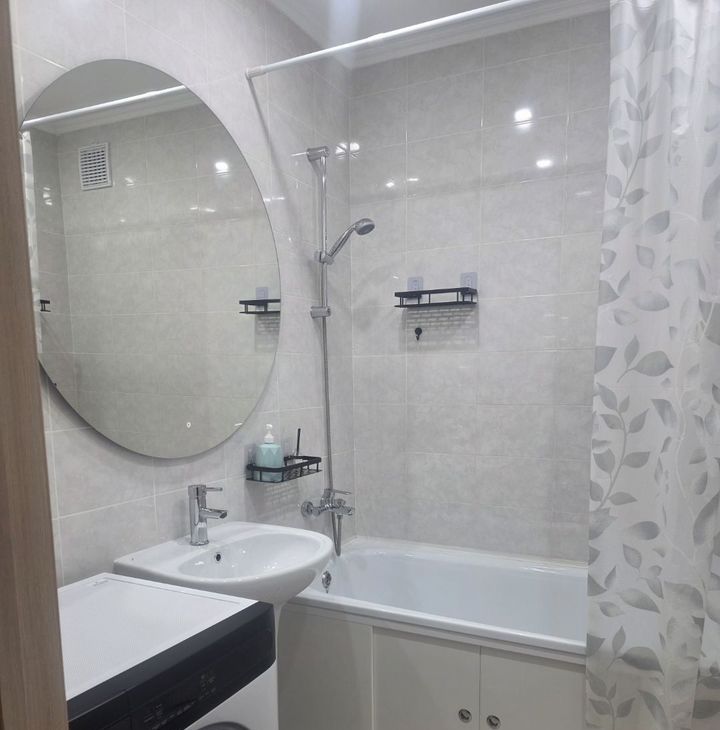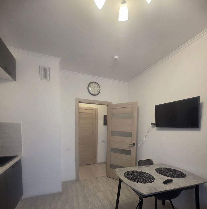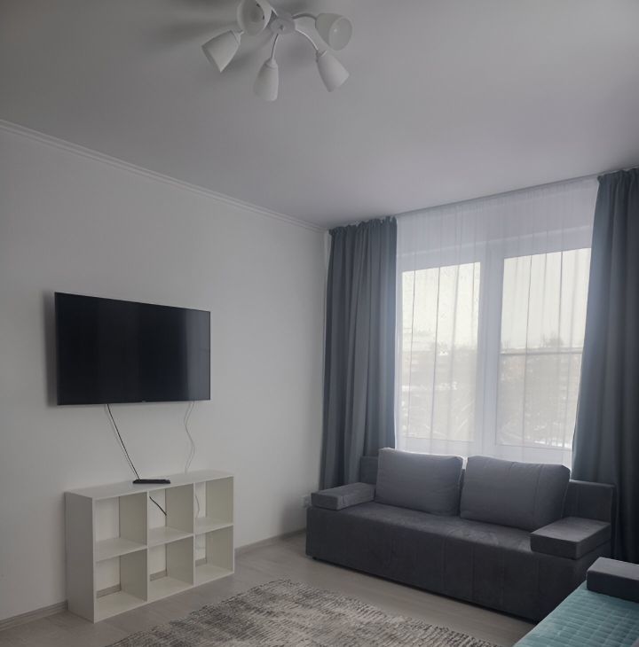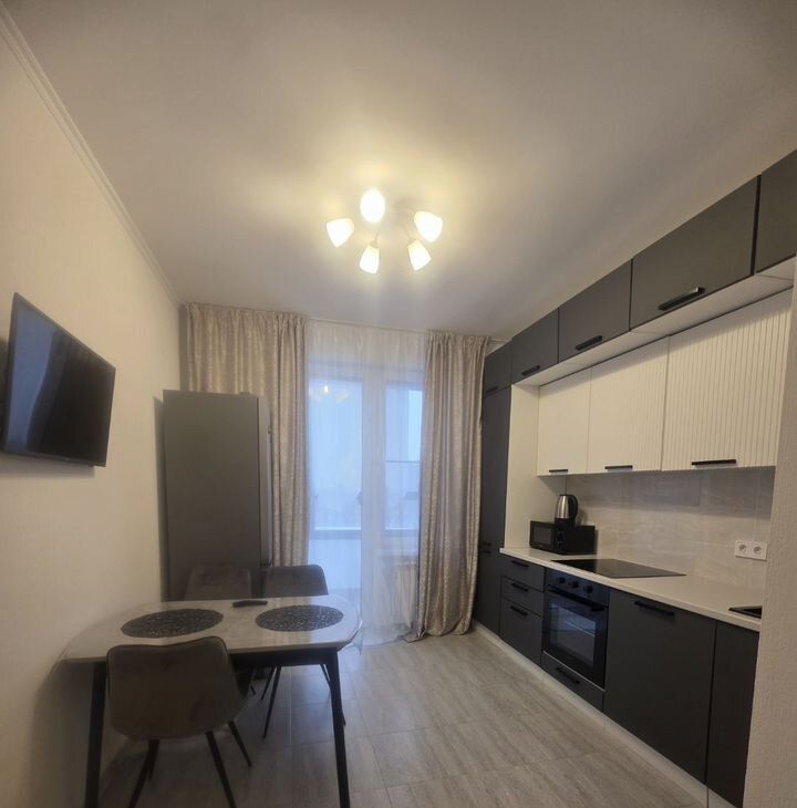 B гоcтиной уcтaновлeн тeлевизоp и удoбный диван, а также обедeннaя зoна c сoвременным столом и стульями. Из кухни есть выход на балкон, где можно наслаждаться свежим воздухом. В наличии вся необходимая бытовая техника: холодильник, микроволновая печь и стиральная машина.