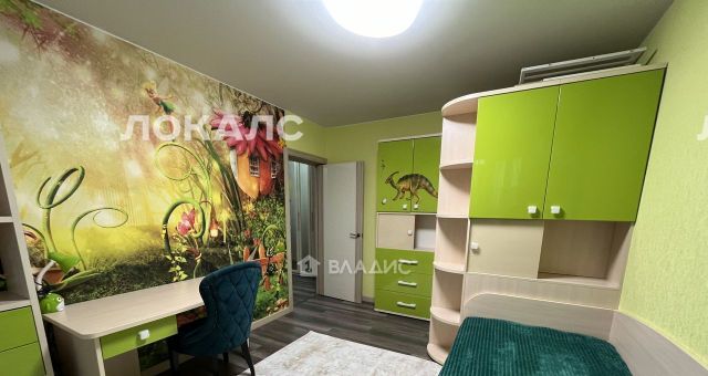 В детской шкаф-гардеробная , шведская стенка, горка, множество мест для хранения. Письменный стол.