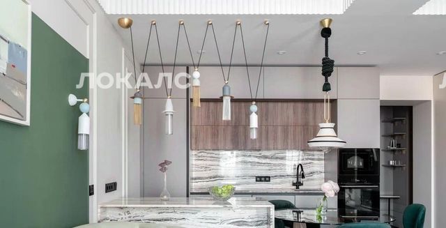 Отделка подоконников, кухни и декоративных элементов натуральным камнем. Многоуровневый свет, дизайнерские люстры и бра.