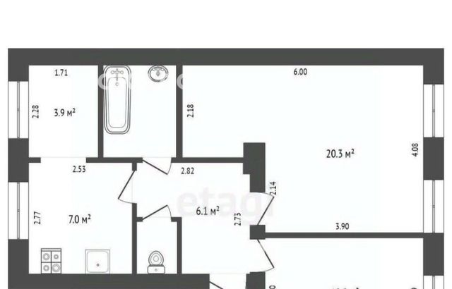 2-к кв. Москва 2-й кв-л, 1 (52.1 м²)