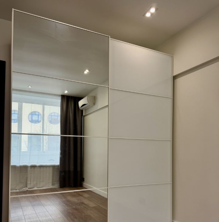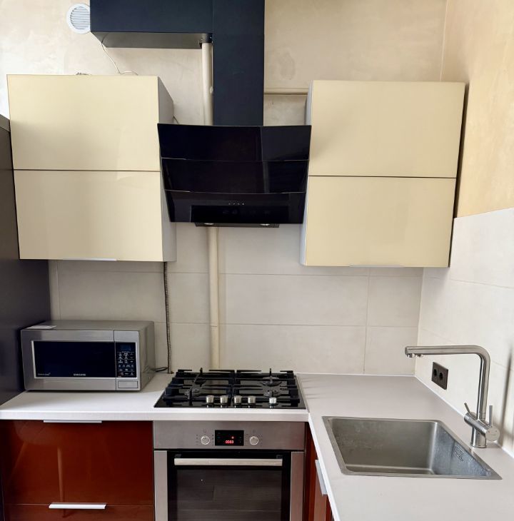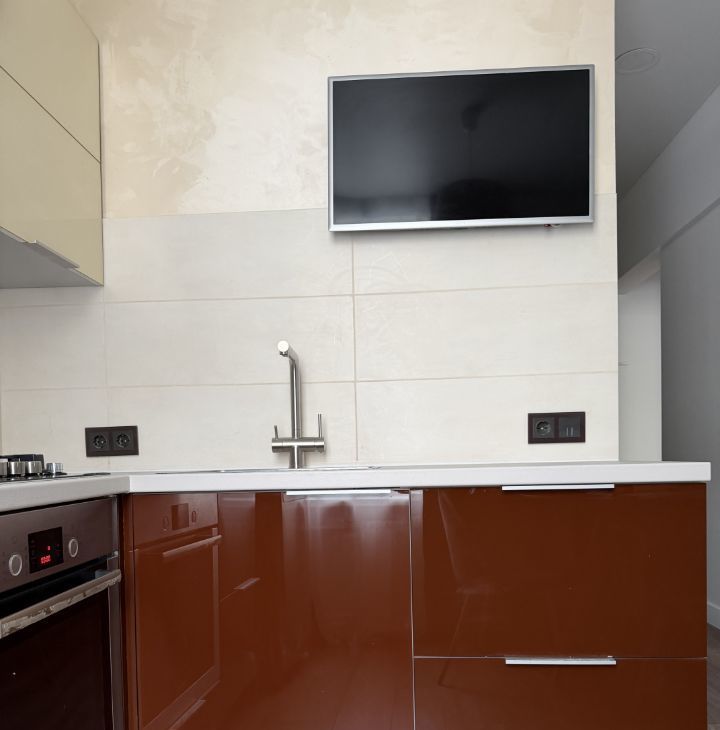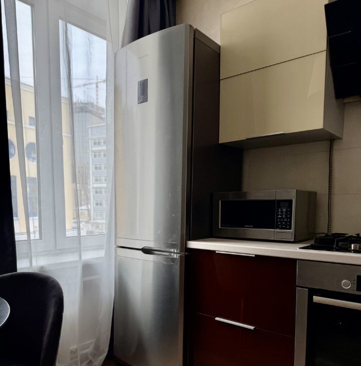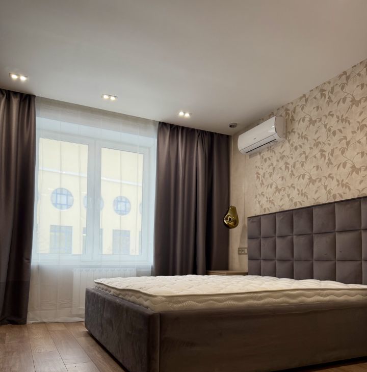 Планировка: кухня, 2 изолированные спальни, раздельный санузел, гардеробная и балкон. Квартира оборудована кухонным гарнитуром, мебелью и техникой. Есть микроволновая печь, духовой шкаф, холодильник, плита, кондиционер, телевизоры, стиральная машина. Проведен интернет с Wi-Fi и подключено ТВ. Вид из окон в переулок.