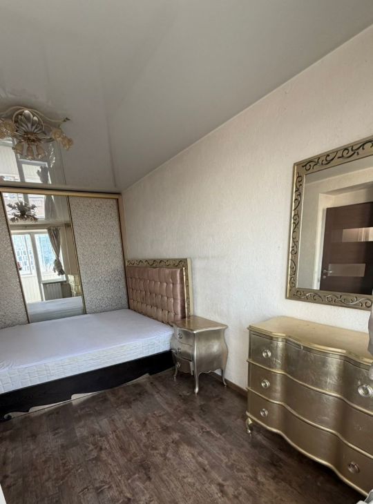 Чистота и спокойствие. Квартира в 12-этажном доме и в отличном состоянии: металлическая дверь, кухня-гостиная: кухонный гарнитур с встроенным холодильником, варочной панелью, стиральная машина, посудомоечная машина, микроволновка; стол, 4 стула; раскладной диван, кресло, кондиционер, выход на застекленную лоджию; душевая кабина в ванной комнате (плитка до потолка). В спальне: кровать, зеркальный встроенный шкаф, комод, зеркало, рабочий стол, выход на застекленную лоджию. В прихожей: большой встроенный шкаф. Развитая инфраструктура. Очень удобная транспортная развязка, рядом все магазины, дет/сады, школы, игровые площадки. Рассматриваются приличные клиенты.