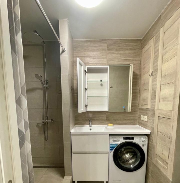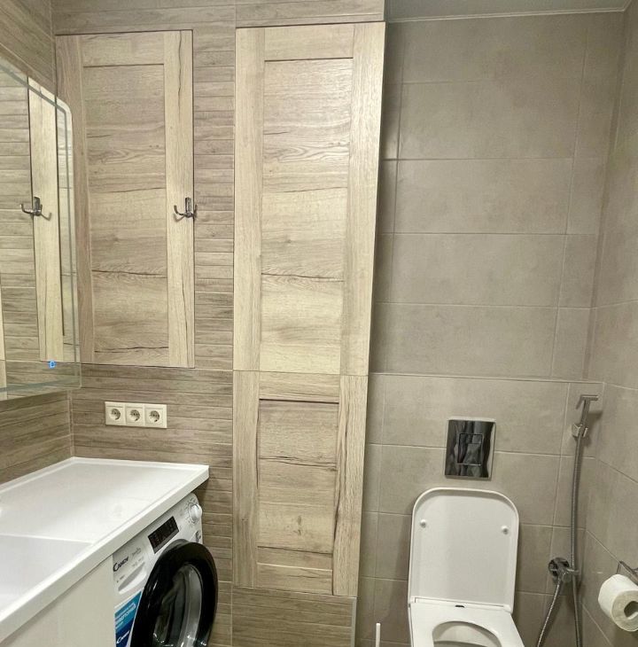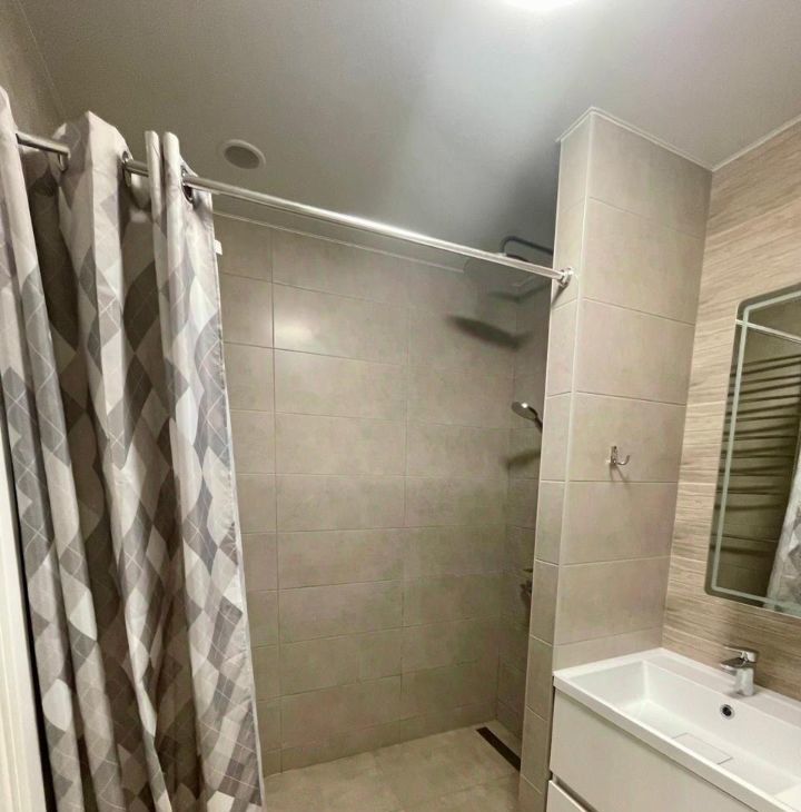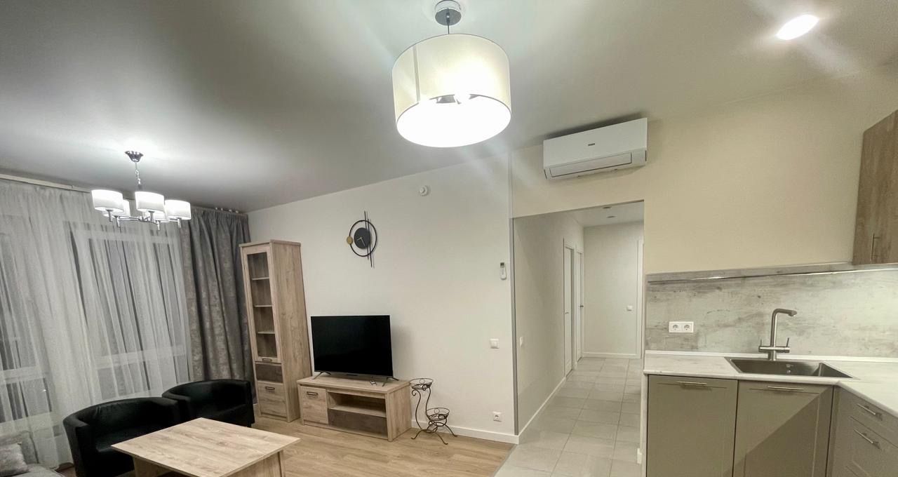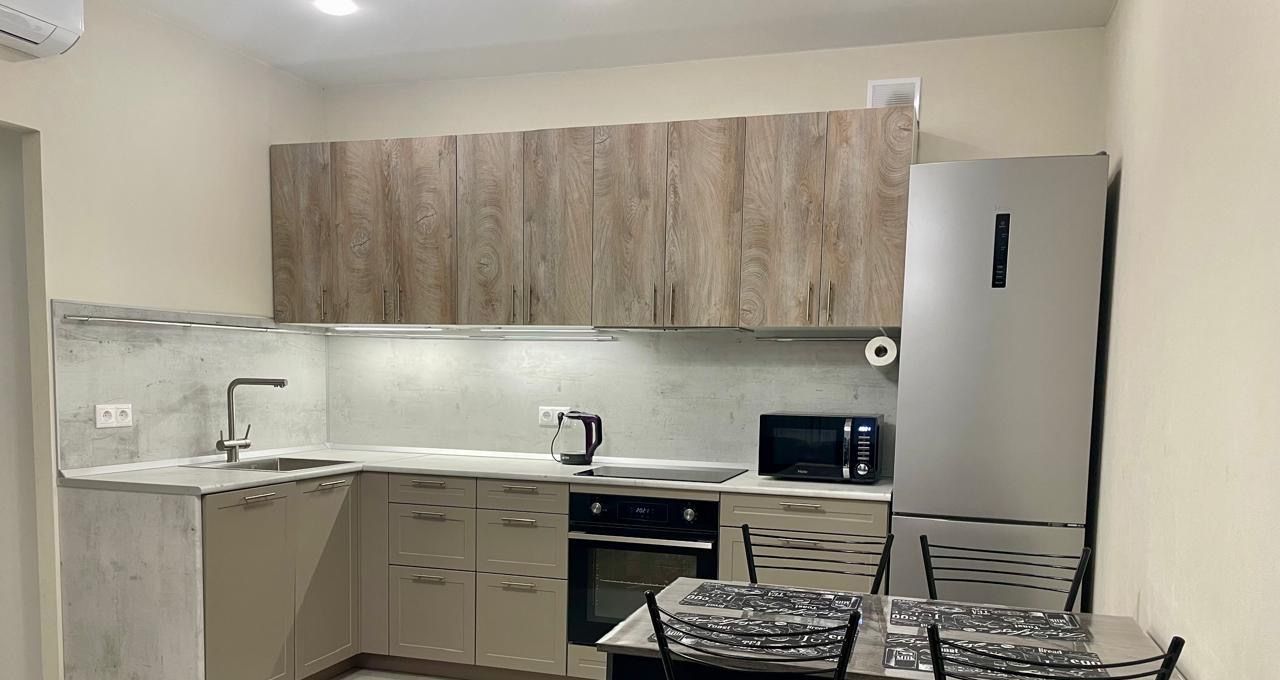 Квартира выполнена в стиле "евроремонт", что делает её современной и комфортной для проживания. Внутри есть вся необходимая мебель — на кухне и в комнате. Ванная комната оборудована душевой кабиной. В квартире установлена современная техника: кондиционер, холодильник, посудомоечная и стиральная машины, телевизор. Всё это создаёт удобство и уют для будущих жильцов.