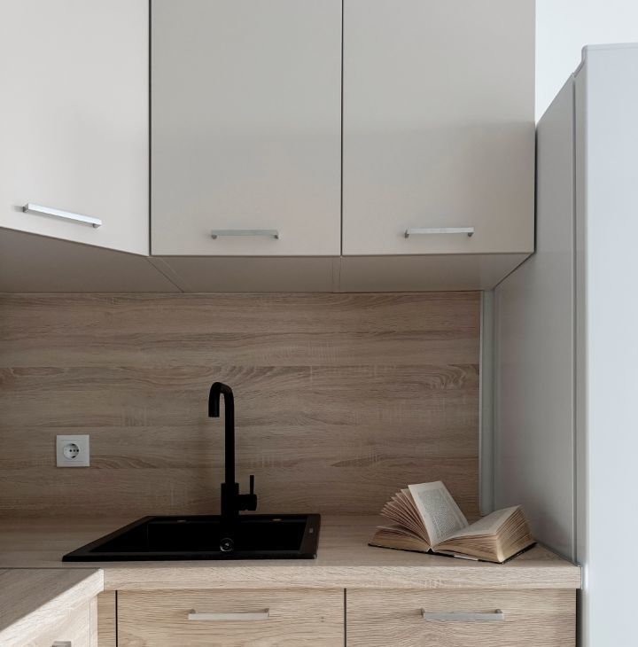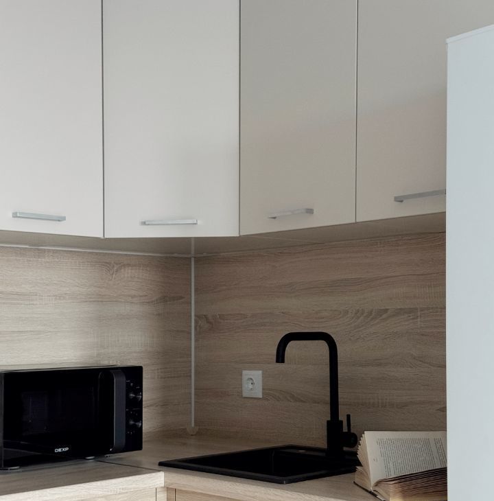 Бытовая техника: стиральная машина, холодильник, варочная панель, вытяжка, печь СВЧ, а так же все необходимое для комфортного проживания.