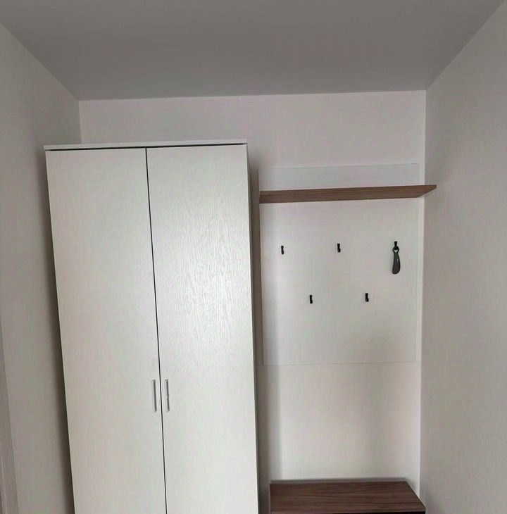 • удобная прихожая со шкафом, вешалкой и обувницей