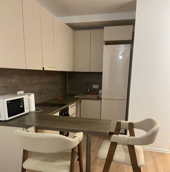 Функциональная планировка: просторная кухня совмещенная с гостиной, роскошная спальная, большой санузел с ванной, функциональный шкаф, уютная входная группа.