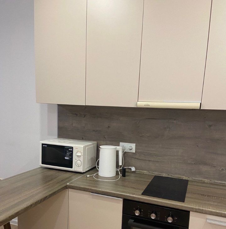 Квартира укомплектована новой мебелью и техникой: холодильник, варочная панель, духовкой шкаф, чайник, стиральная машина, свч печь.