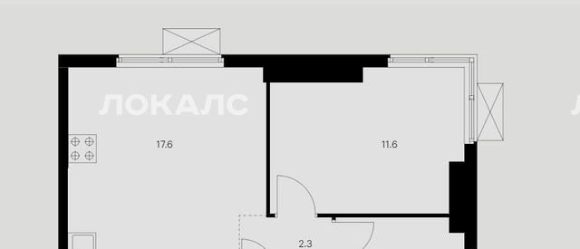 Просторная кухня-гостиная 17,5 м2 + две изолированные спальни + раздельный санузел.