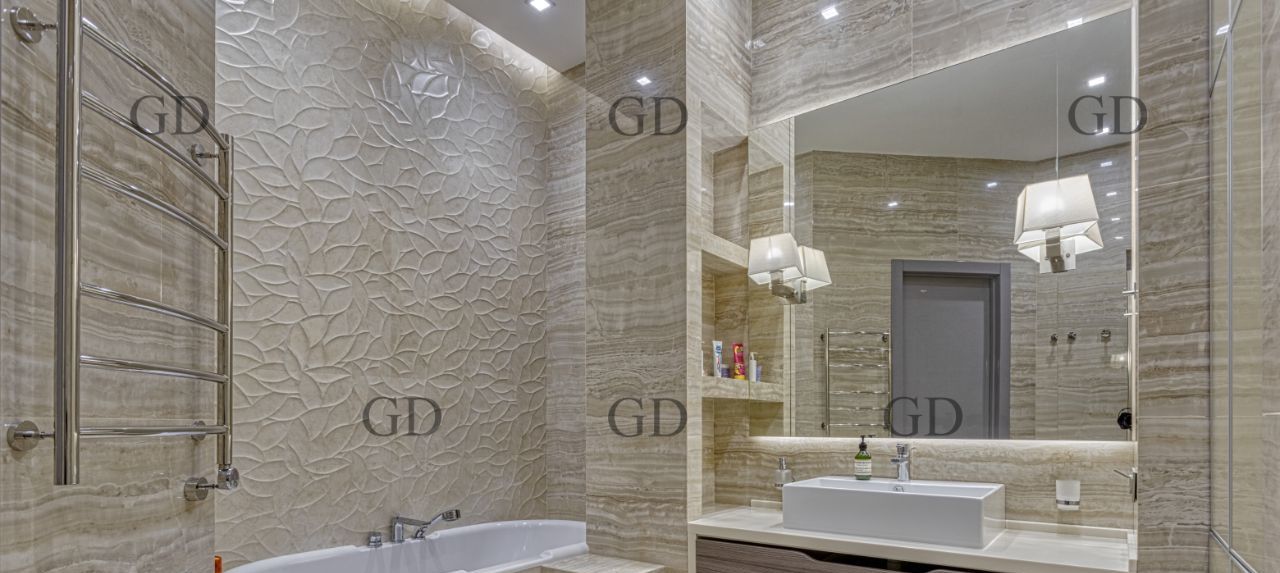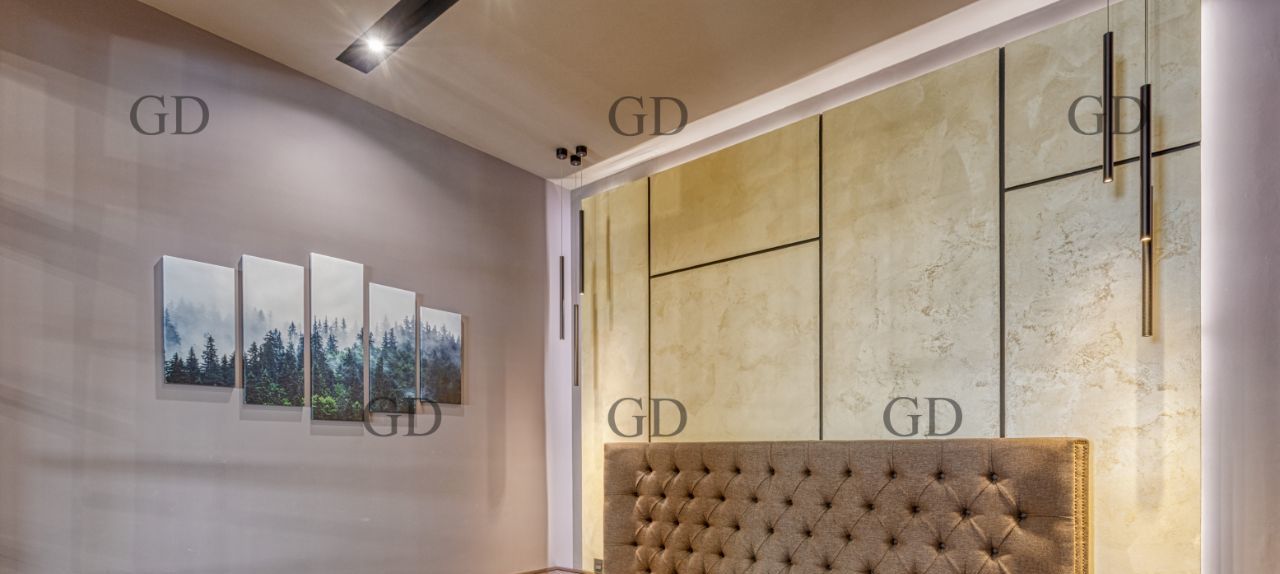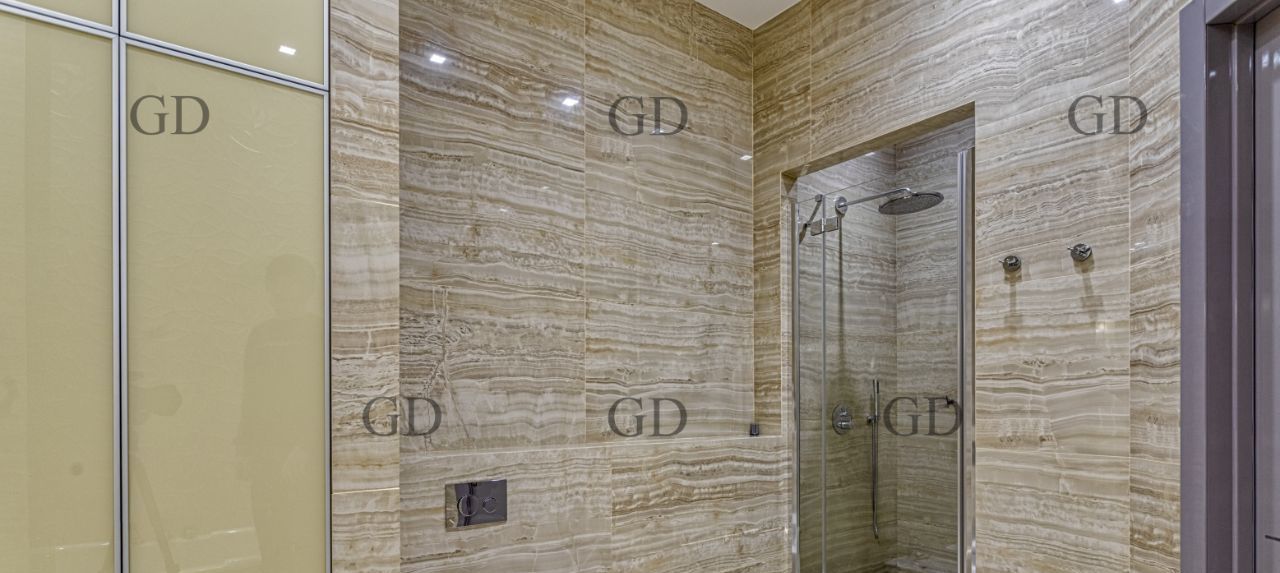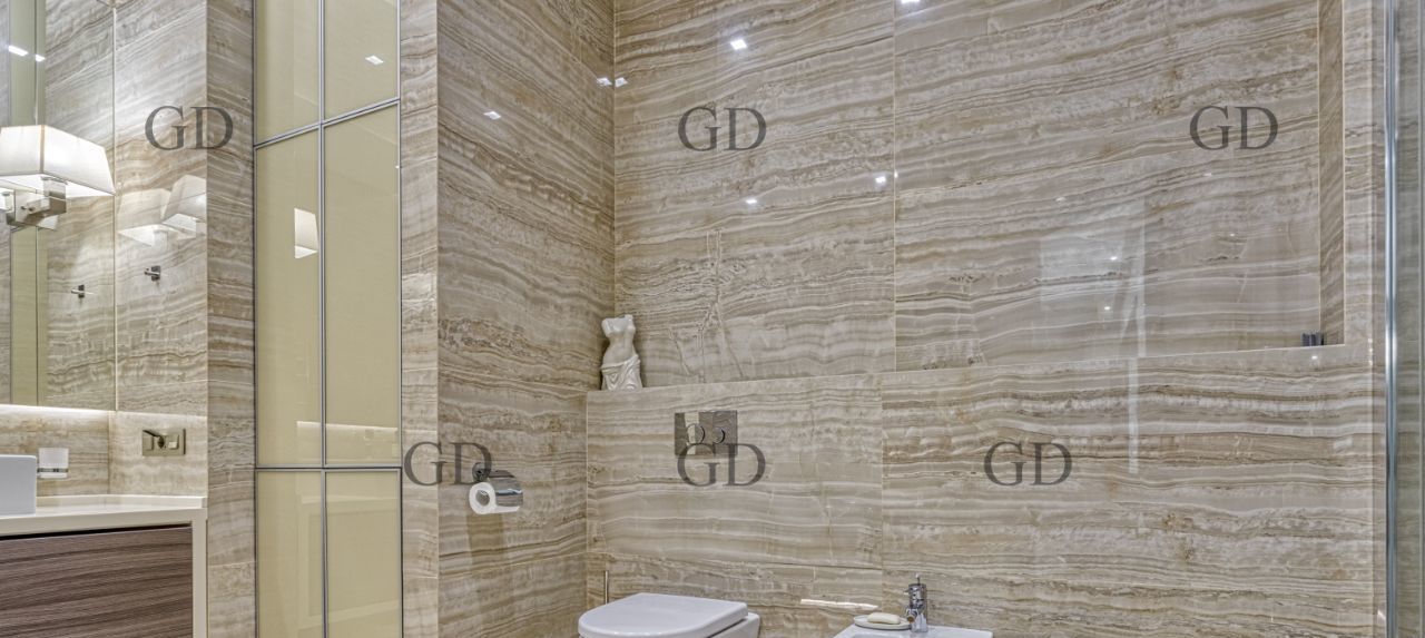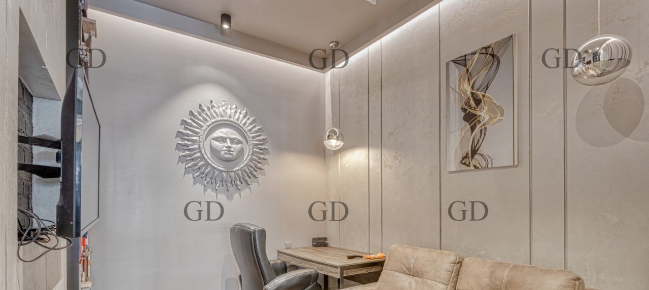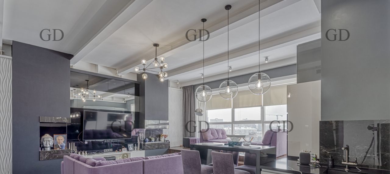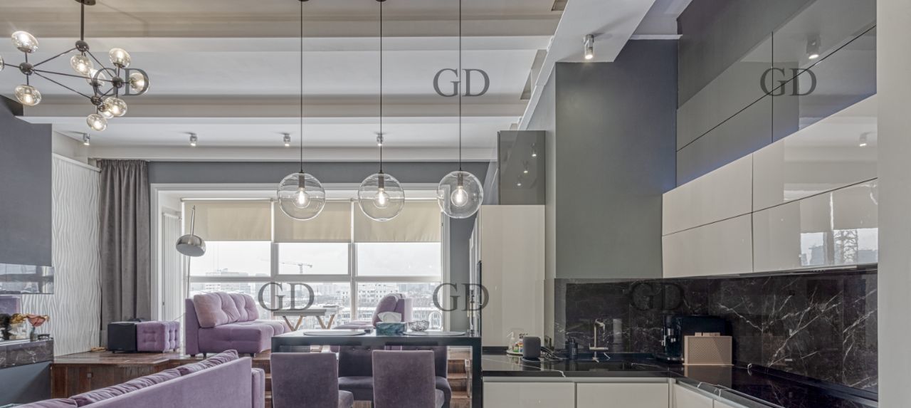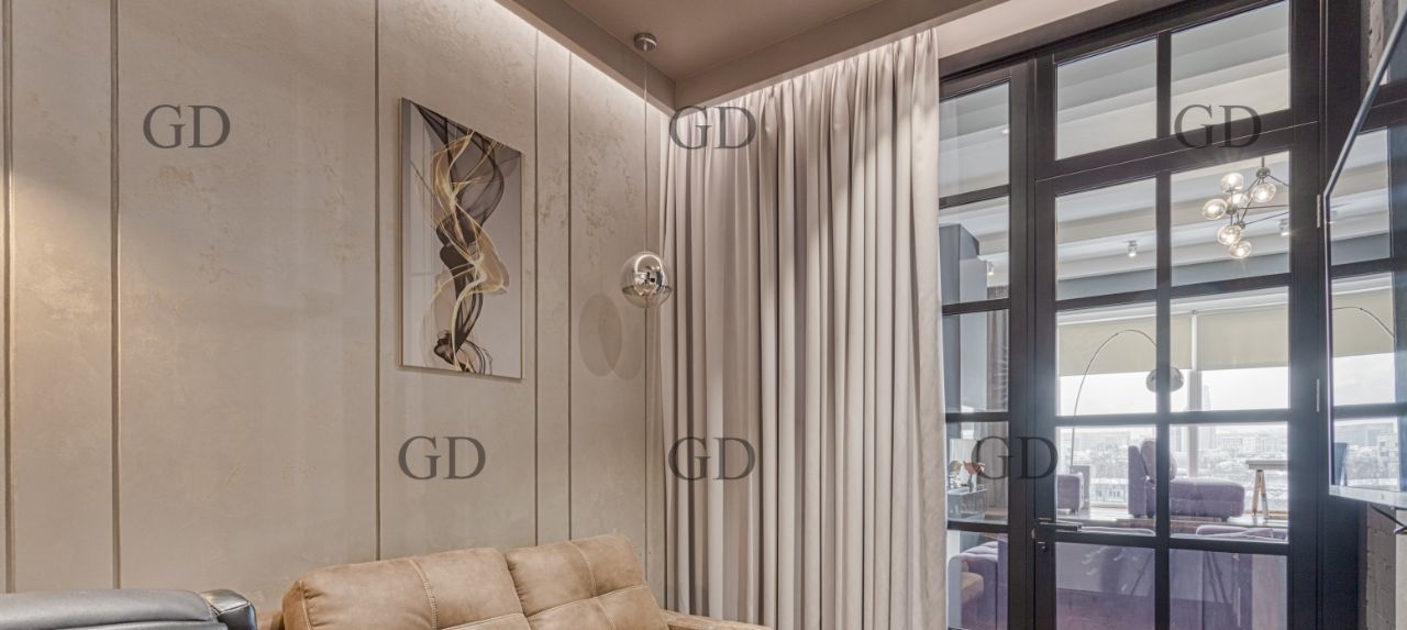 В квартире есть все необходимое для вашего комфорта: кондиционер, холодильник, винный холодильник, биокамин, телевизор, посудомоечная и стиральная машины. Планировка апартаментов включает две комнаты - спальню, рабочий кабинет и просторную кухню-гостиную. Ванная комната оборудована как ванной, так и душевой кабиной. Большая гардеробная.
