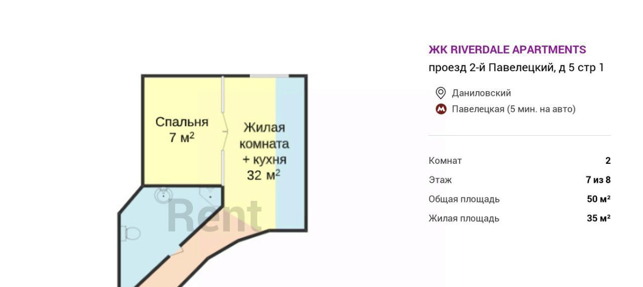 2-к кв. Москва 2-й Павелецкий проезд, 5С1 (50.0 м²)