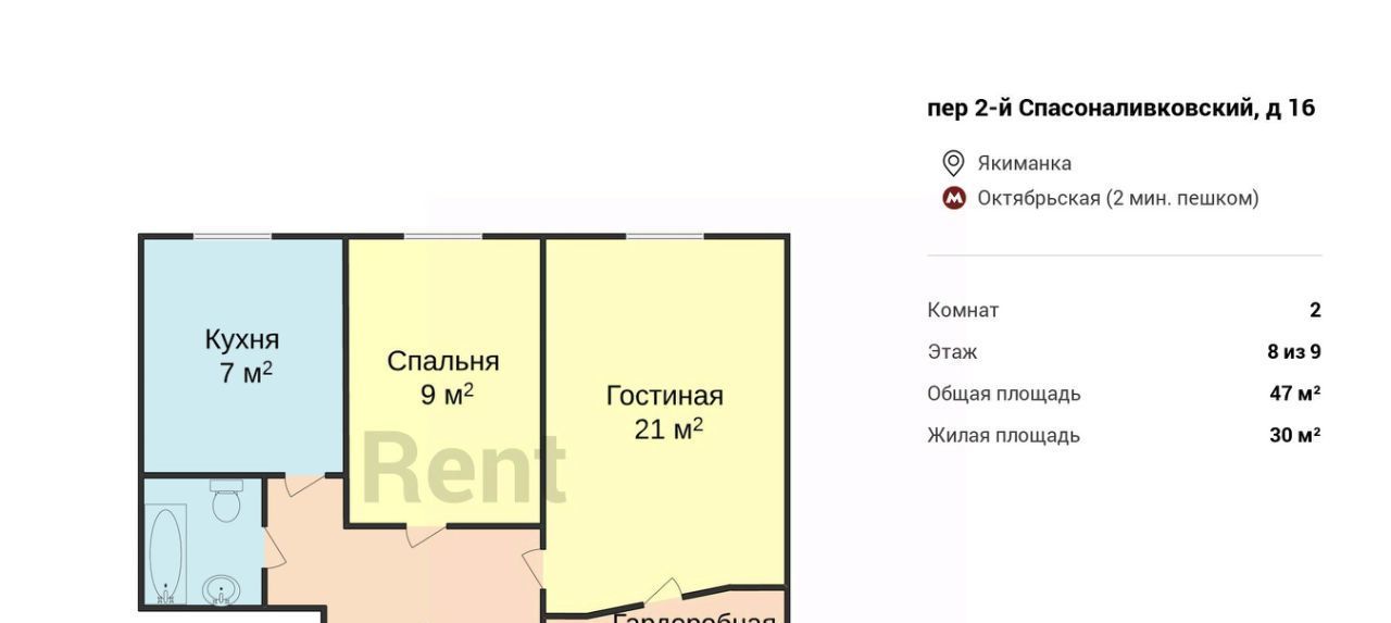 2-к кв. Москва 2-й Спасоналивковский пер., 16 (47.0 м²)