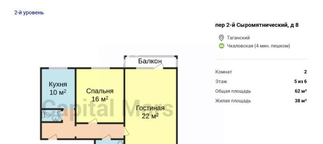2-к кв. Москва 2-й Сыромятнический пер., 8 (62.0 м²)