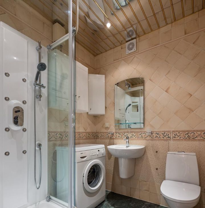Совмещенный санузел отделан плиткой по евростандарту, установлена импортная душевая кабина и проточный водонагреватель (очень удобно при отключении горячей воды).