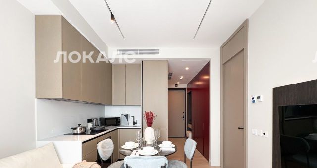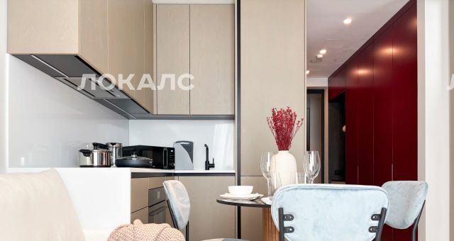 - кухонная зона оборудована необходимой бытовой техникой: варочная панель, духовая печь, свч, посудомоечная машина, вытяжка, сушилка для посуды. Обеденный стол сервирован на 3 персоны, что позволит принимать трапезы с гостями;