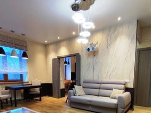 Есть все для комфортной жизни - хороший ремонт, красивый вид из окна, кондиционер и бризер в спальне, качественная встроенная техника korting (в т.ч. есть духовка и свч), качественная мебель (кухня с множеством мест хранения и вместительные шкафы в коридоре и в спальне, кровать 180 см, интересные световые решения).