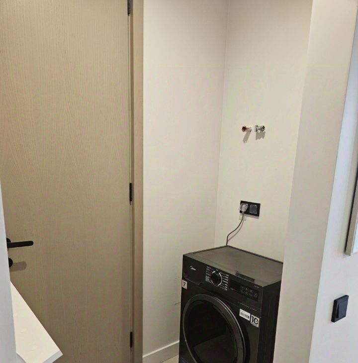 Полностью меблирована и оснащена всей современной техникой: духовой шкаф, посудомойка, СВЧ, холодильник с фильтром питьевой воды, стиральная машина