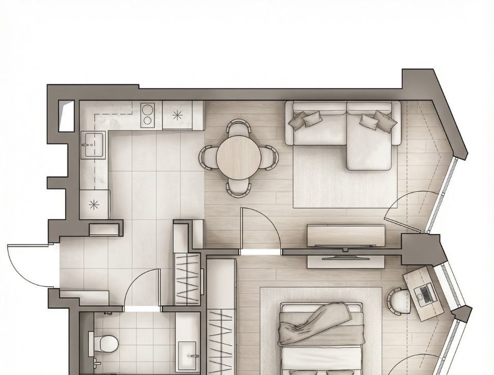 Авторский интерьер, идеальное зонирование .