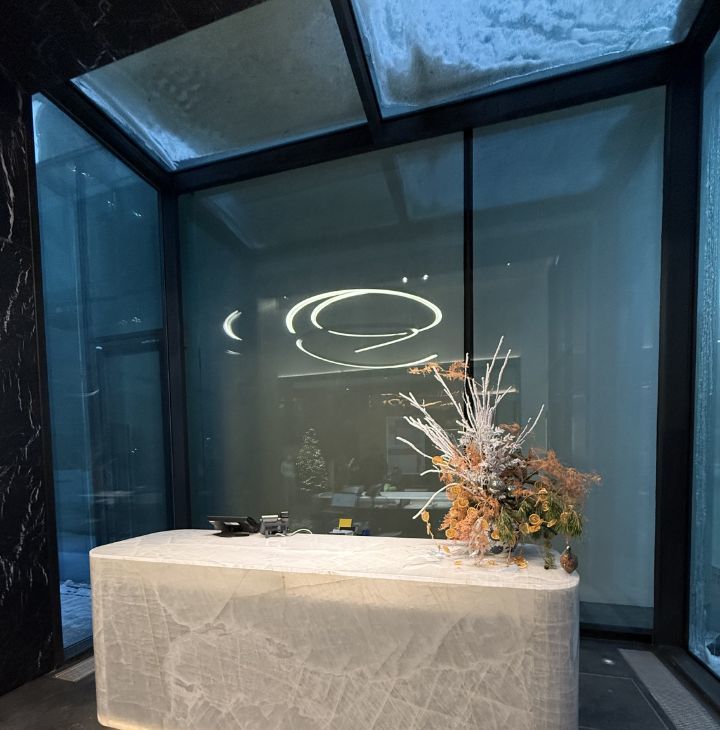 В квартре выполнен свежий дизайнерский ремонт, система "умный дом" , система кондиционирования, приточная вентиляция, окна в пол.