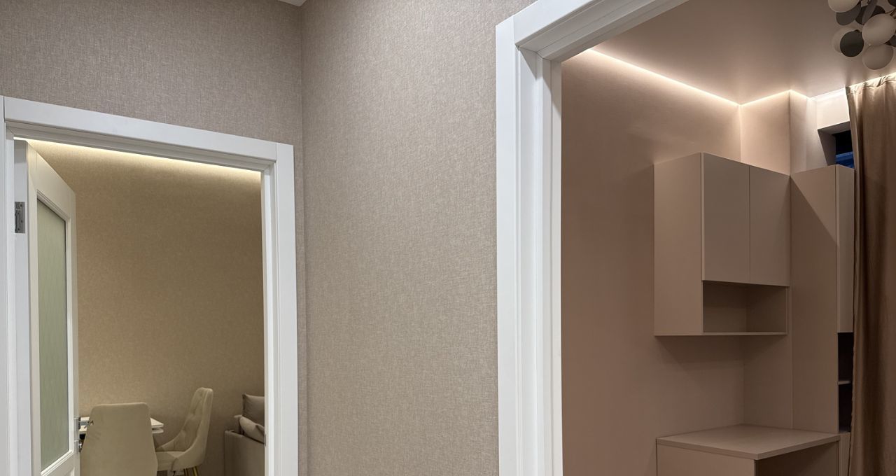 В квартире ремонт выполнен в светлых спокойных тонах, атмосфера гармонии и уюта.