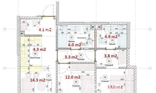 - мастер-спальня 12.0 м2