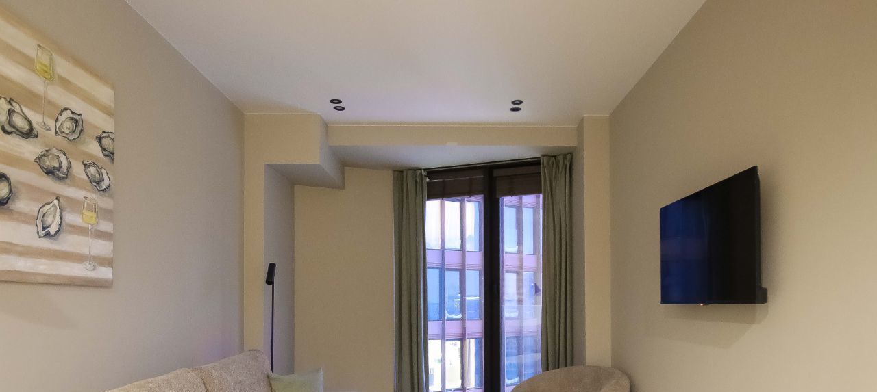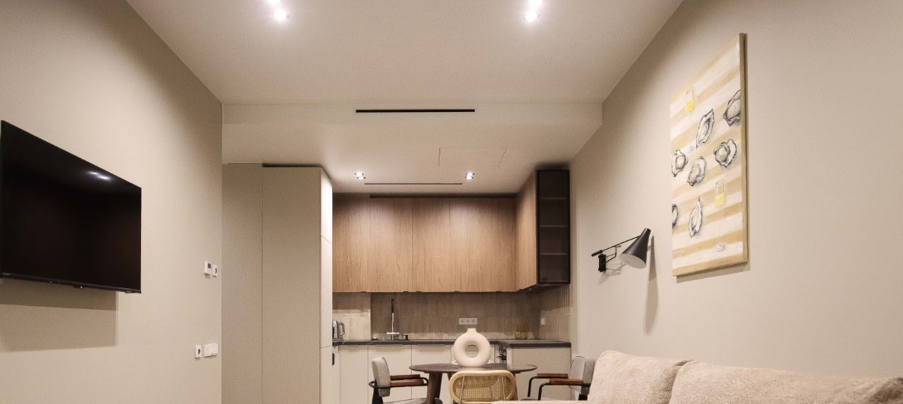 В квартире выполнен дизайнерский ремонт, полы - деревянный паркет,что придаёт ей особый стиль и уют. Просторные и светлые комнаты обставлены современной мебелью, а кухня полностью оборудована всем необходимым: здесь есть холодильник, посудомоечная машина и удобные рабочие поверхности. В ванной комнате установлена ванна, а также есть стиральная машина. Для вашего удобства в квартире есть приточно-вытяжная вентиляция ( с забором воздуха из улицы) и телевизор. Интернет подключен, поэтому вы всегда будете на связи.