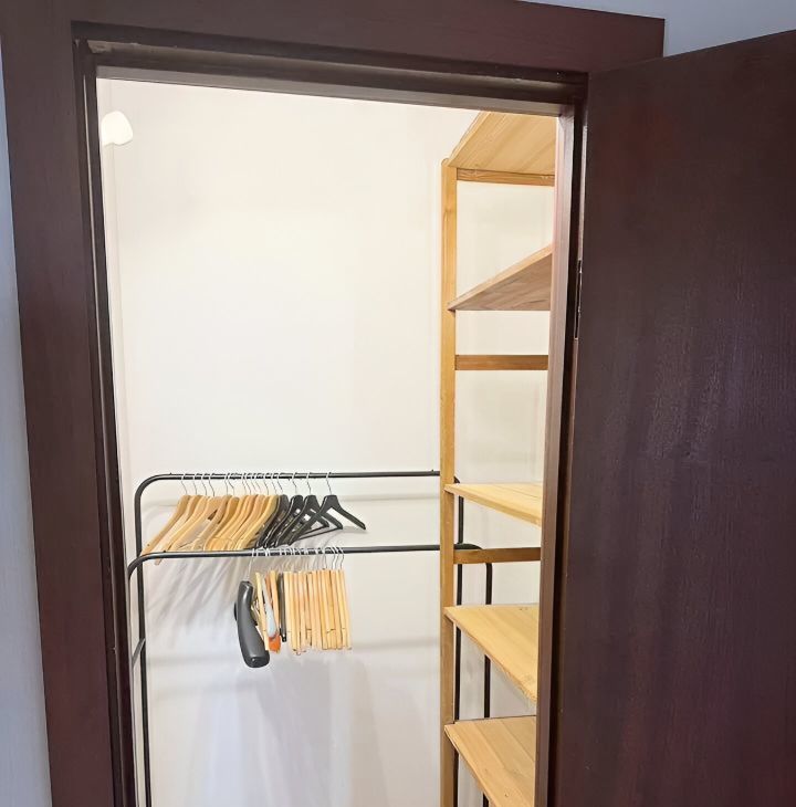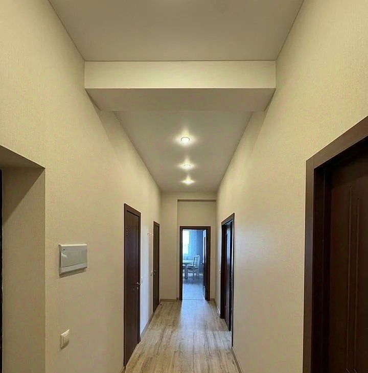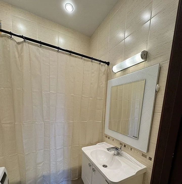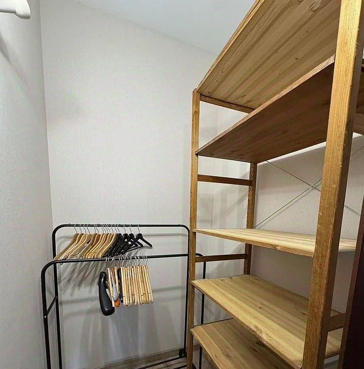 Перед квартирой большой изолированный тамбур, в котором можно оставить велосипед или самокат, а также обувь.