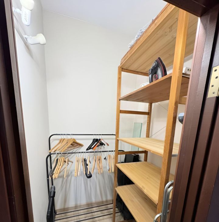 В квартире есть гардеробная, которая добавляет удобства для хранения вещей. Санузел раздельный