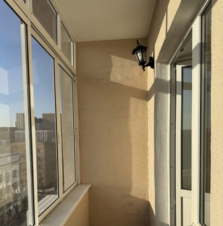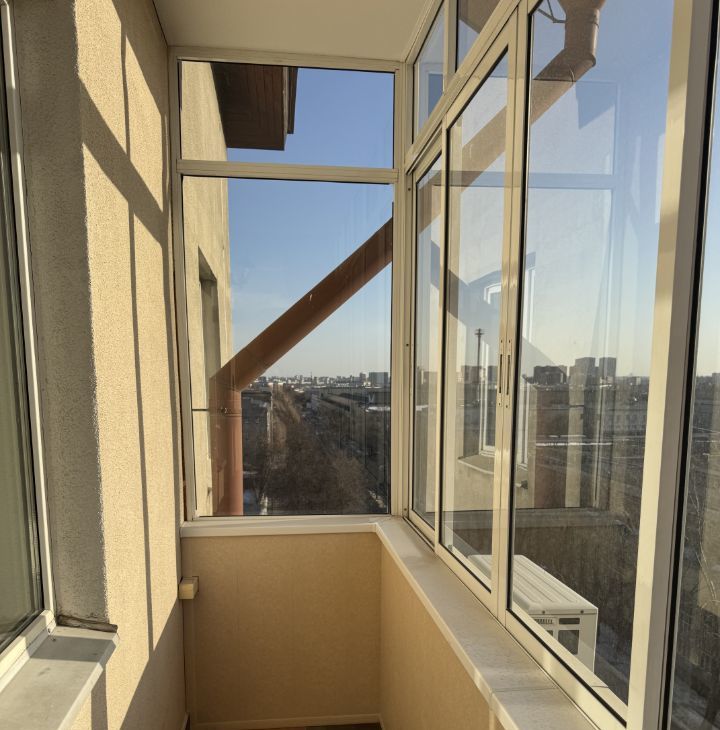 Балкон застеклен, что позволяет наслаждаться свежим воздухом даже зимой.