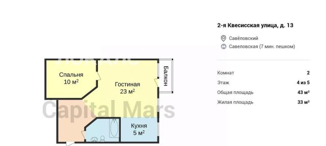 2-к кв. Москва 2-я Квесисская ул., 13 (43.0 м²)