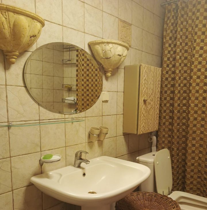 Атмосферная двухкомнатная квартира в кирпичном доме, близко к центру. Дизайн-ремонт не новый, но вполне комфортный для проживания. Двери - красное дерево. В санузле, прихожей и кухне - керамическая плитка, натуральный камень, Полы: в комнатах - ретро паркет (оставлен принципиально, тонирован), в прихожей - массивная доска. Мебель спонтанная, преимущественно итальянская (шкаф массив, диван натуральная кожа, стулья натуральная кожа). Окна - две стороны на улицу, одно в зеленый двор, перед окном деревья.
