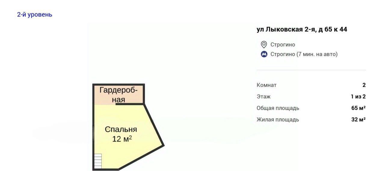 2-к кв. Москва 2-я Лыковская ул., 65К44 (65.0 м²)