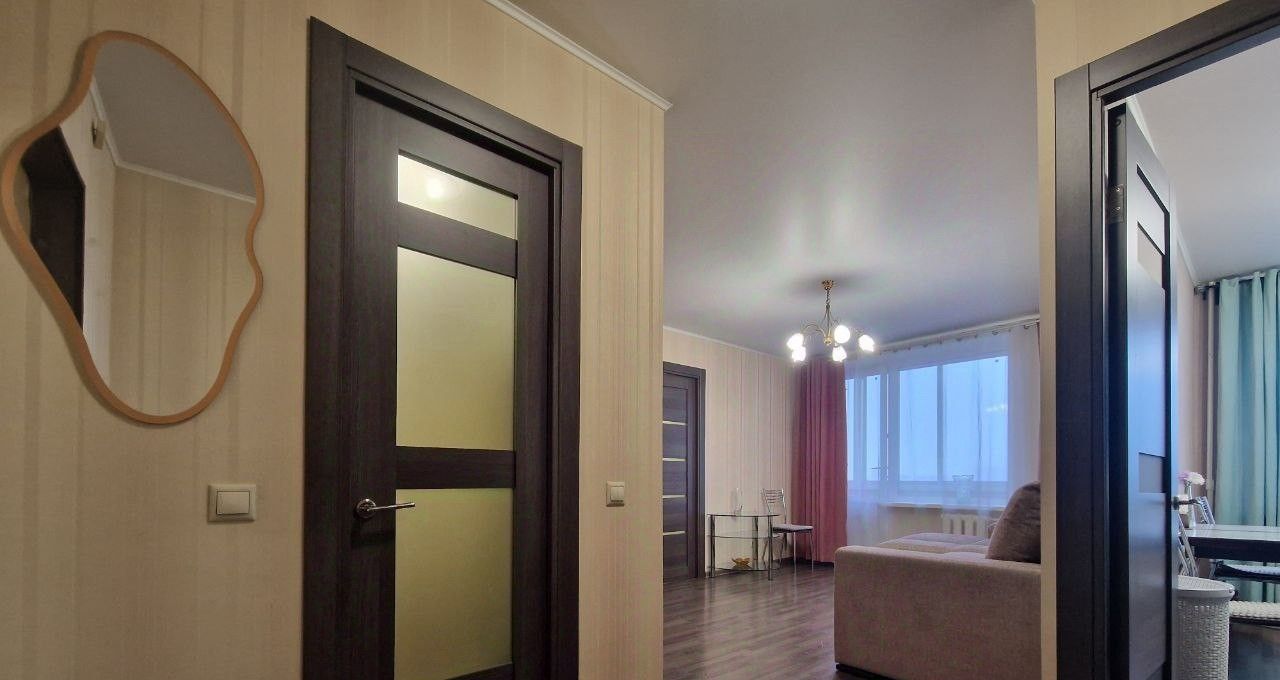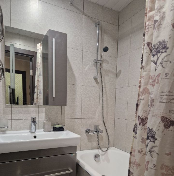 Квартира с дорогим хорошим ремонтом, диван сделан на заказ, в спальне очень удобный ортопедический матрас. Кухня полностью новая, специально сделана под сдачу, оборудована всей необходимой мебелью и техникой: холодильником, посудомоечной машиной и телевизором. В квартире также имеется стиральная машина. Окна выходят во двор, поэтому вам будет обеспечена тишина и спокойствие. В квартире один разделенный санузел с ванной, а также есть гигантская лоджия для отдыха на обе комнаты с шикарным видом.