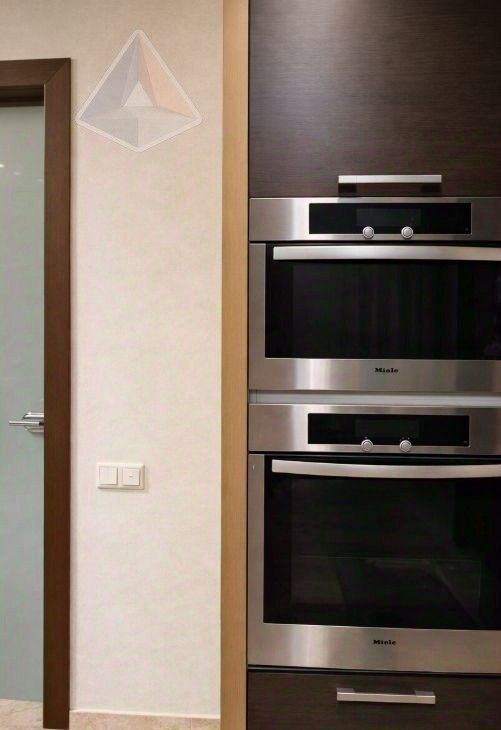 88,1 м² авторского интерьера: две изолированные комнаты, две полноценные ванные, отдельная гардеробная система — приватность и порядок как базовые принципы. Кухня (22 м²) с техникой Miele — духовой шкаф, паровой шкаф, посудомоечная машина, холодильник — интегрирована в единый архитектурный ансамбль, где эстетика не спорит с удобством. Натуральные фактуры, тёплая цветовая палитра, трёхметровые потолки — интерьер, который не утомляет, а поддерживает.