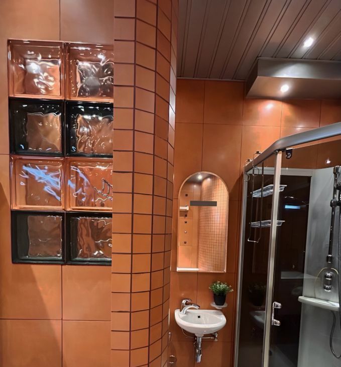Уютная светлая квартира, с залом студией, спальней и просторной ванной комнатой с душевой и ванной.