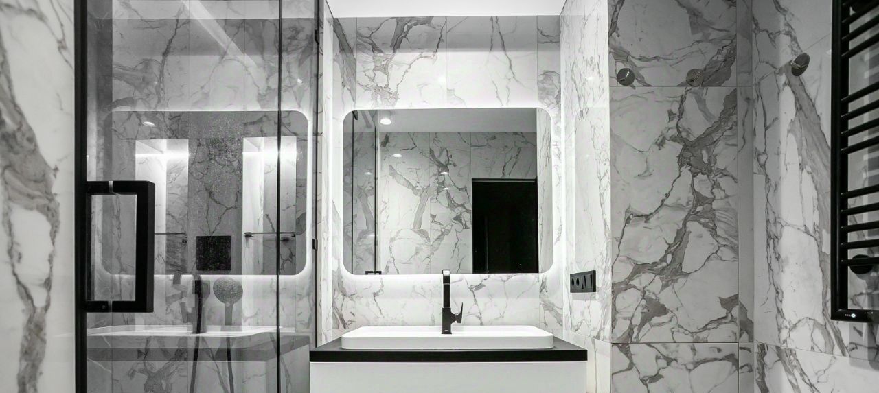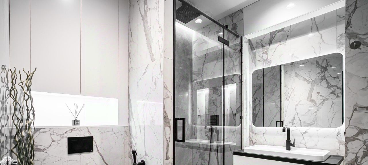 Премиальный дизайнерский ремонт, продуманный до мелочей, делали для себя, во всех зонах с керамогранитом — тёплый пол.