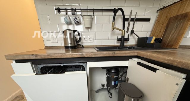 Кухня: дополнительно к базовому набору техники встроена посудомоечная машина, измельчитель отходов, кран с фильтром аквафор.