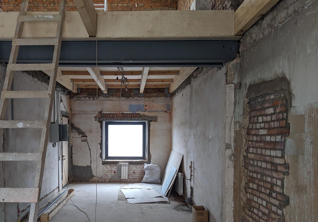 Двухэтажные апартаменты с мансардными окнами и окнами в две стороны + французский балкон. Площадь по полу 42 м2 + 16 м2 второй этаж. Можно сделать любую планировку - единственная квартира на этаже и нет соседей только сбоку. Можно сделать камин. Варианты планировок прилагаю - можно сделать и офис и квартиру. Отличный жк со своей кровлей и классными резидентами. Есть так же дополнительные возможности по окнам и террасе - можем обсудить при звонке по телефону