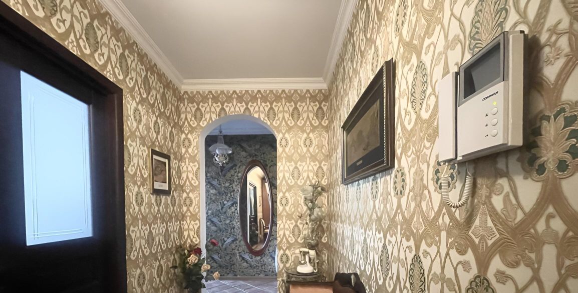 В квартире сделан ремонт. Изолированные комнаты- спальни: 18 и 12 кв м. Кухня-столовая 9 кв м. Совмещенный санузел с гидромассажной ванной и гарнитуром с зеркалом. Просторный коридор. Есть вся необходимая мебель, кондиционер, стиральная машина, холодильник и прочая техника. Окна во двор. Твмбур на две квартиры. Хорошие и интеллигентные соседи.