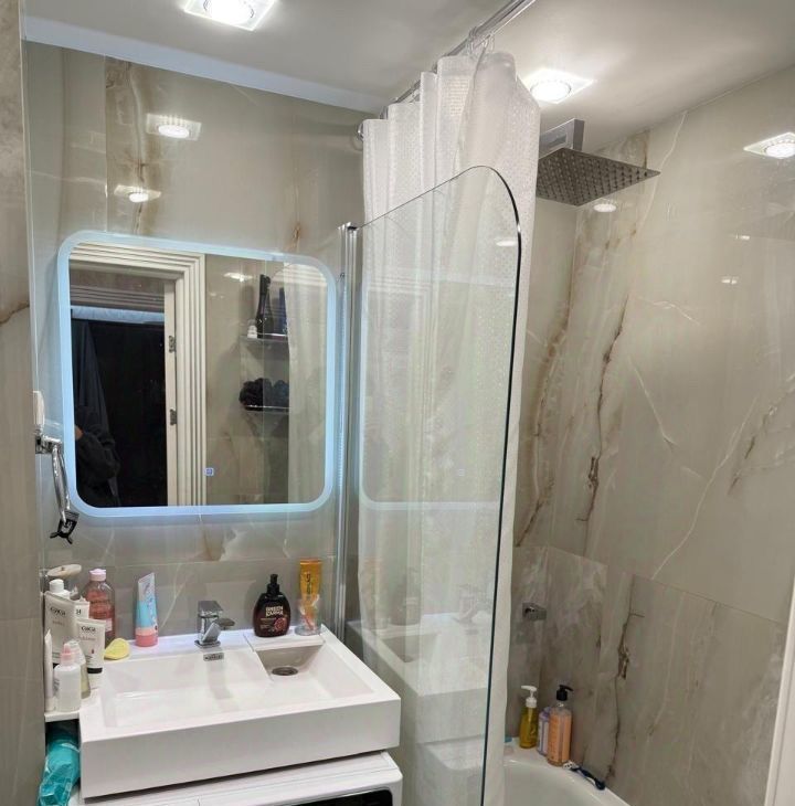 В квартире есть всё необходимое для комфортного проживания. Евроремонт выполнен с использованием качественных материалов, что подчёркивает современный и стильный интерьер. В комнатах и на кухне есть мебель. Из техники — кондиционер, холодильник, телевизор и стиральная машина. Санузел оборудован ванной, поэтому можно расслабиться после трудового дня.