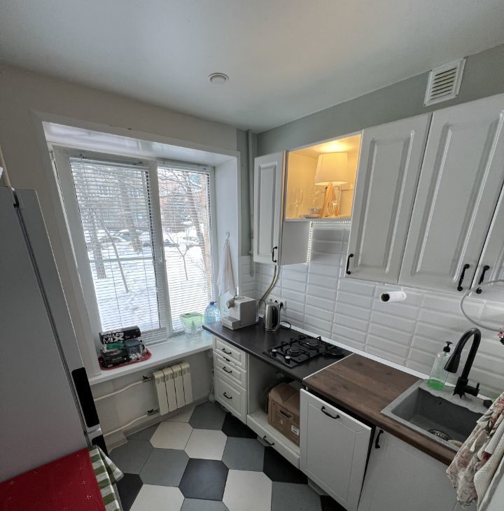 Квартира площадью 43.5 квадратных метров на первом этаже пятиэтажного кирпичного дома. Он построен в 1964 году и окружён развитой инфраструктурой: рядом находятся школа Интеграл, детский сад, торговый центр Филион, Парк Победы, Парк Фили, аптеки, спортивные и детские секции, 3 фитнес-клуба. Также рядом станции метро Багратионовская, Филёвский парк, Парк победы.