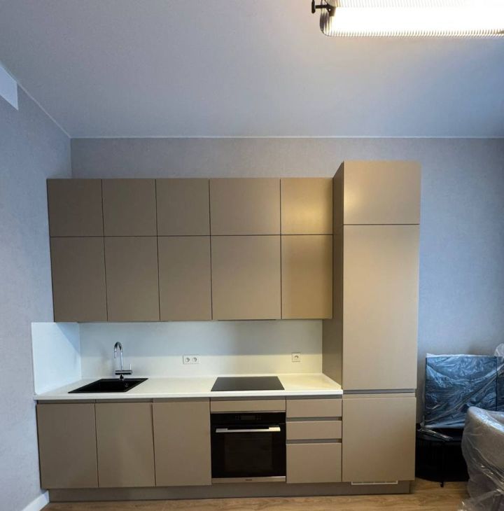 Новая техника: ТВ 50 дюймов, посудомоечная машина, духовой шкаф, варочная панель, холодильник, вытяжка, стиральная машина.