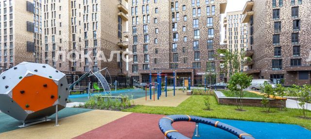 Презентабельная входная группа. Огороженная охраняемая территория с подземным паркингом, огромным внутренним благоустроенным двором с детскими площадками и развитой внутренней инфраструктурой (магазины, кафе, аптеки, салоны красоты, фитнес клуб). На территории комплекса работает фитнес-клуб, оборудованы детская площадка и паркинг. Рядом находятся магазины, детская поликлиника и детский сад, немного дальше - кафе, аптеки. В пешем доступе прогулочные зоны леса Октябрьское поле и парка Березовая роща. Удобный выезд на улицу Народного Ополчения и Звенигородское шоссе.