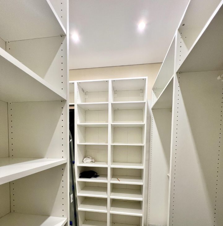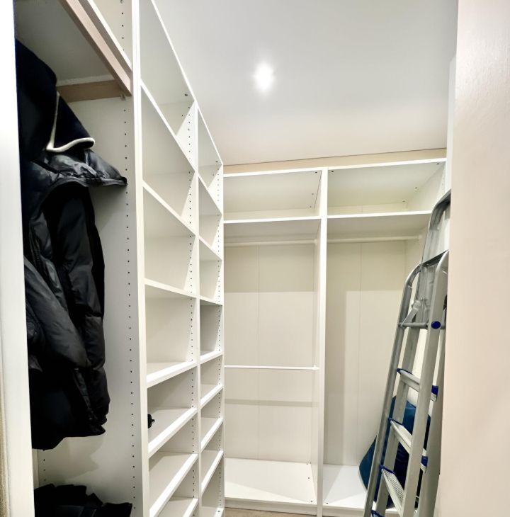 - огромная гардеробная комната с функциональной системой хранения. Встроенный вместительный шкаф-купе в прихожей;